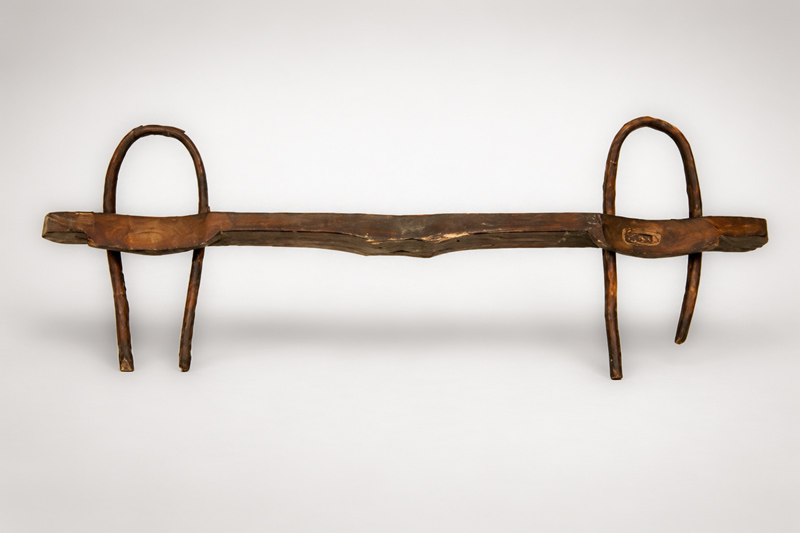 Јарам „тељиг“, Е – 698, Мланча, 20. век. Израђен је из једног комада дрвета са два полукружна удубљења и по два отвора кроз који се провлаче два савијена дебља прута. На средини је отвор у који се ставља дрвени клин.