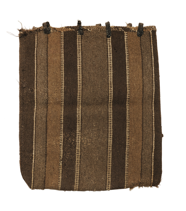 Врећа (од кострети), E-3756, Велика Сугубина, 20. век. Основа при ткању је од конопље, а потка од козје длаке (кострети) са утканим уздужним пругама у неколико тонова браон боје. Крајеви вреће ојачани су плетеницом од од упредене козје длаке на коју је пришивено осам гајки кроз које се провлачи уже и врећа везује. Користила се за пренос жита. Производ је занатлија – мутавџија.
